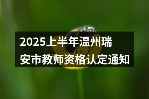 根据《中华人民共和国教师法》《教师资格条例》《〈教师资格条例〉实施办法》《浙江省实施〈教师资格条例〉细则》《浙江省中小学和幼儿园教师资格考试改革试点工作实施方案》和《浙江省教育厅教师资格认定指导中心关于做好2025年上半年中小学教师资格认定工作的通知》(浙教资中心〔2025〕1号)等法律、法规及有关规定、通知精神,结合我市教师资格认定工作实际,现就瑞安市2025年上半年教师资格认定工作有关事项通告如下: