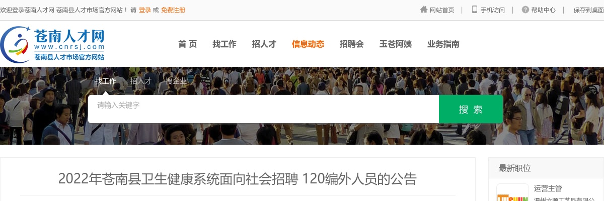 【2022温州医疗卫生考试招聘公告-苍南县卫生健康系统招聘120编外人员16人】相关岗位:
