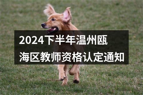 根据《中华人民共和国教师法》《教师资格条例》《〈教师资格条例〉实施办法》《浙江省实施〈教师资格条例〉细则》和《浙江省教育厅教师资格认定指导中心关于做好2024年下半年中小学教师资格认定工作的通知》等法律、法规及有关规定、通知精神,结合我区教师资格认定工作实际,现就做好瓯海区2024年下半年教师资格认定工作有关事项公告如下: