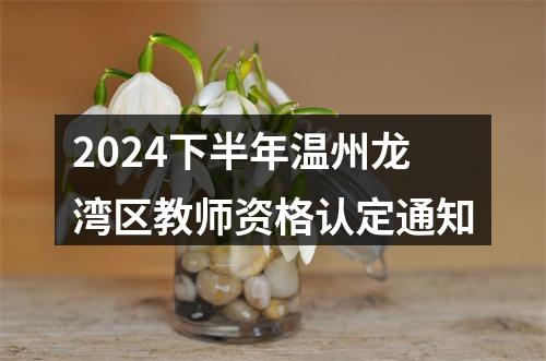 根据《中华人民共和国教师法》《教师资格条例》《〈教师资格条例〉实施办法》《浙江省实施〈教师资格条例〉细则》和《浙江省教育厅教师资格认定指导中心关于做好2024年下半年中小学教师资格认定工作的通知》等法律、法规及有关规定、通知精神,结合我区教师资格认定工作实际,现就龙湾区2024年下半年教师资格认定工作的有关事项通告如下。