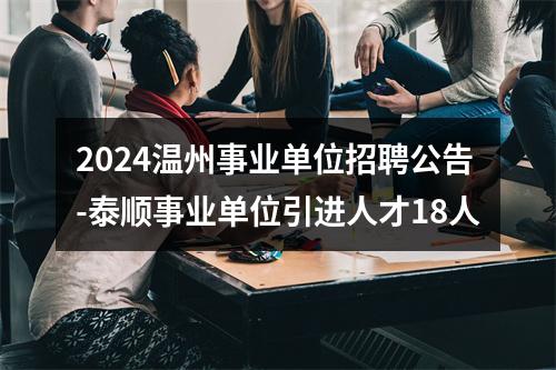 - 温州事业单位招聘信息:【2024温州事业单位招聘公告-泰顺事业单位引进人才18人】具体内容见下文。