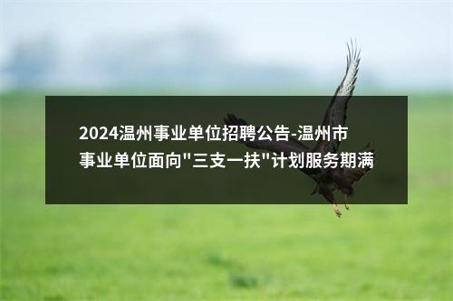 - 温州事业单位招聘信息:【2024温州事业单位招聘公告-温州市事业单位面向"三支一扶"计划服务期满招聘7人】具体内容见下文。