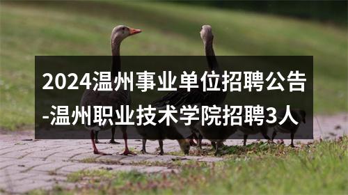 - 温州事业单位招聘信息:【2024温州事业单位招聘公告-温州职业技术学院招聘3人】具体内容见下文。