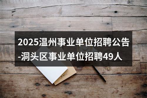 - 温州事业单位招聘信息:【2025温州事业单位招聘公告-洞头区事业单位招聘49人】具体内容见下文。