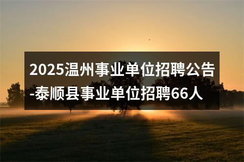 - 温州事业单位招聘信息:【 2025温州事业单位招聘公告-泰顺县事业单位招聘66人】具体内容见下文。