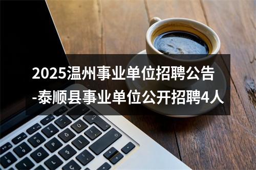 - 温州事业单位招聘信息:【2025温州事业单位招聘公告-泰顺县事业单位公开招聘4人】具体内容见下文。