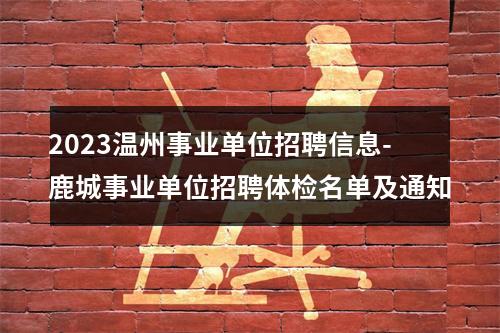 - 温州事业单位招聘信息:【2023温州事业单位招聘信息-鹿城事业单位招聘体检名单及通知】具体内容见下文。