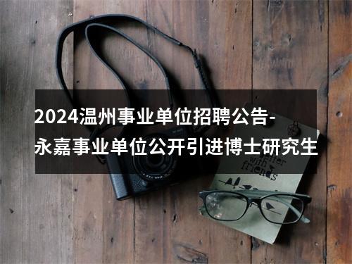 - 温州事业单位招聘信息:【2024温州事业单位招聘公告-永嘉事业单位公开引进博士研究生】具体内容见下文。
